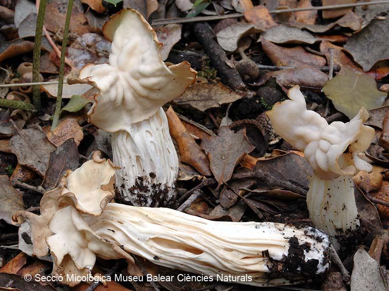 Descripció : L'orella de llebre blanca és un fong sapròfit que es troba bàsicament als alzinars, sobre tot quan comença a fer fred. És una espècie comú a les Illes. La seva principal característica és el capell en forma de sella de muntar.