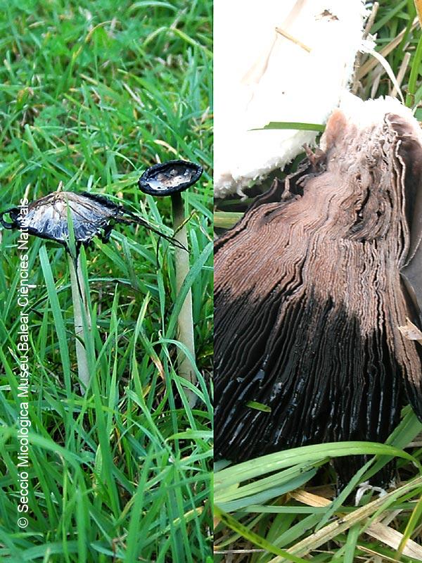 Descripción : Frecuente en todas las Islas. Se le conoce popularmente como 'seta de tinta' porque los sombreros de los ejemplares adultos son delicuescentes y la esporada negra se transforma en una masa líquida negra, empezando por el extremo del sombrero y quedando reducido a un disco deshilachado encima del pie. Antiguamente algunos monjes utilizaban este líquido negro como tinta para escribir.