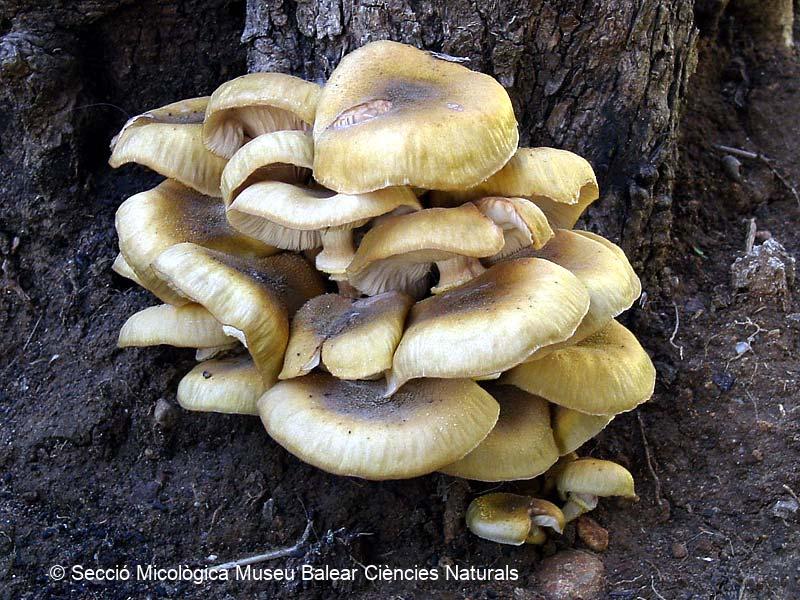 Descripció : La gírgola d'alzina és un fong molt freqüent a Mallorca. Típicament creix en grups de nombrosos individus i damunt soques d'alzines encara que es pot desenvolupar en molts tipus d'arbres diferents. El fet que creixin en flotes fa que sovint els capells d'aquests bolets estiguin 'tacats' de blanc per la caiguda de les espores dels que es troben damunt. Els exemplars més joves presenten el capell tancat i tot el conjunt s'assembla a un clau, d'aquí ve el nom popular d'aquest bolet en italià: Chiodini 'Clauet' . Es pot comportar com un paràsit molt perjudicial i provocar problemes greus en explotacions forestals. M. Rolland, l'any 1903, va descriure una plaga en els tarongers de la vall de Sóller (Mallorca) que afectà d'una manera molt negativa en l'economia de la comarca.