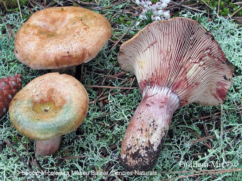 Possible confusió : a les Illes es pot confondre amb Lactarius vinosus Quél. de color molt més intens i làtex color violaci, i Lactarius deliciosus f. rubescens Schmitt, de mida més petita i làtex taronja que vira lentament a vinós. Totes dues espècies són igualment comestibles.