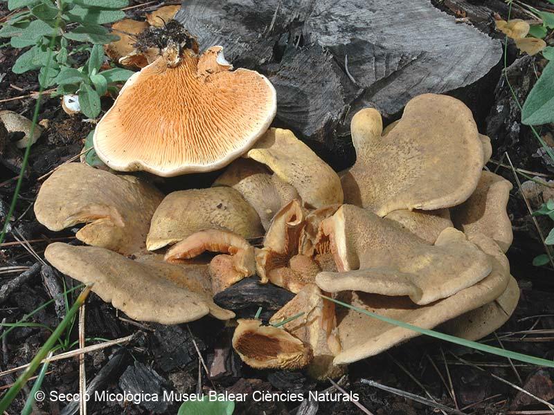 Descripció : La gírgola de pi es un bolet freqüent a totes les Illes Balears, que es troba damunt fusta i calcinals de pi (Pinus halepensis). Malgrat que hi ha gent que l'ha consumit, no és gaire apreciat a causa de la seva baixa qualitat i la seva textura coriàcia.