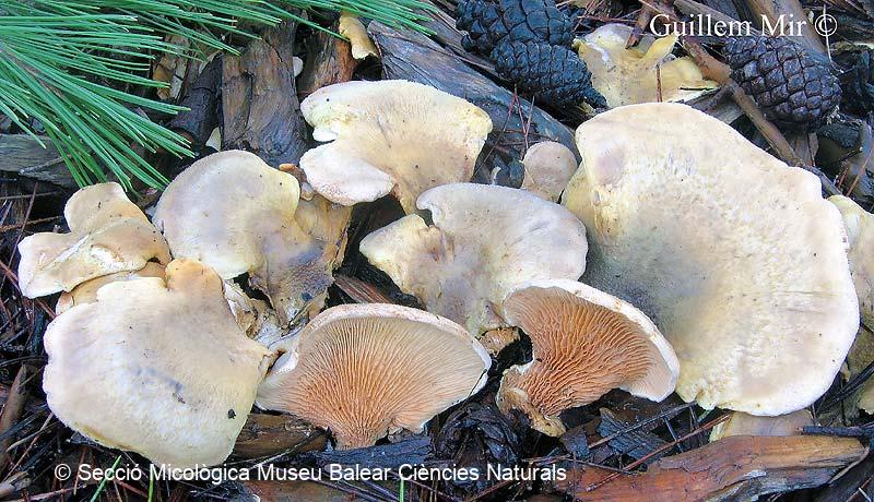 Descripció : La gírgola de pi es un bolet freqüent a totes les Illes Balears, que es troba damunt fusta i calcinals de pi (Pinus halepensis). Malgrat que hi ha gent que l'ha consumit, no és gaire apreciat a causa de la seva baixa qualitat i la seva textura coriàcia.