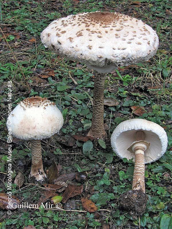 Descripción : Macrolepiota procera es una seta que crece en los encinares de la Sierra de Tramontana (Mallorca), no demasiado frecuente pero que aparece en grupos de numerosos individuos. Puede llegar a hacerse muy grande por lo que recibe el nombre popular de paraguas o parasol en algunas zonas de las Islas Baleares. Es muy buen comestible de cada vez más conocido y apreciado por los micófagos. Su gran tamaño hace que sea una seta verdaderamente espectacular cuando aparece en el bosque.
