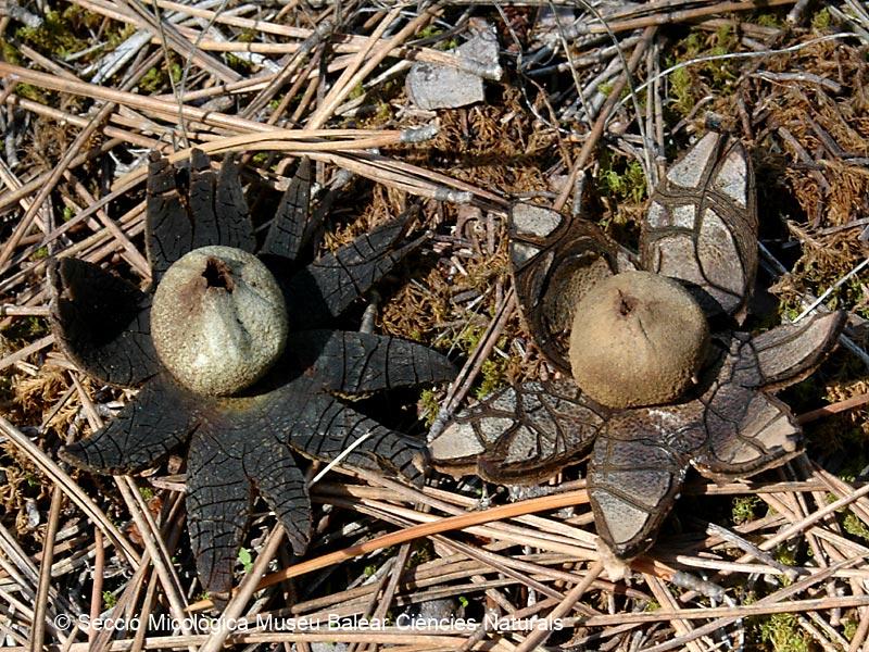 Descripción : Esta seta es fácil de reconocer por ser higroscópica, el exoperidio cuando se humedece se abre en forma de estrella, dejando libre el endoperidio que al menor roce o al caerle encima una gota de agua provoca que salgan de su interior pequeñas 'nubes' cargadas de esporas a través de un poro apical. En tiempo seco el exoperidio se cierra.